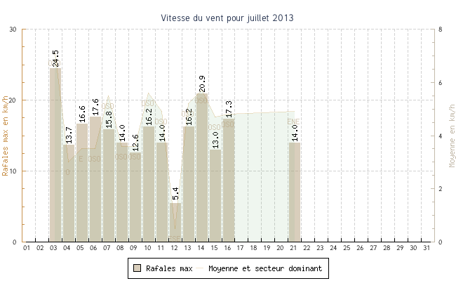 | min | max | moy | Vitesse (rafales) | Secteur | ||